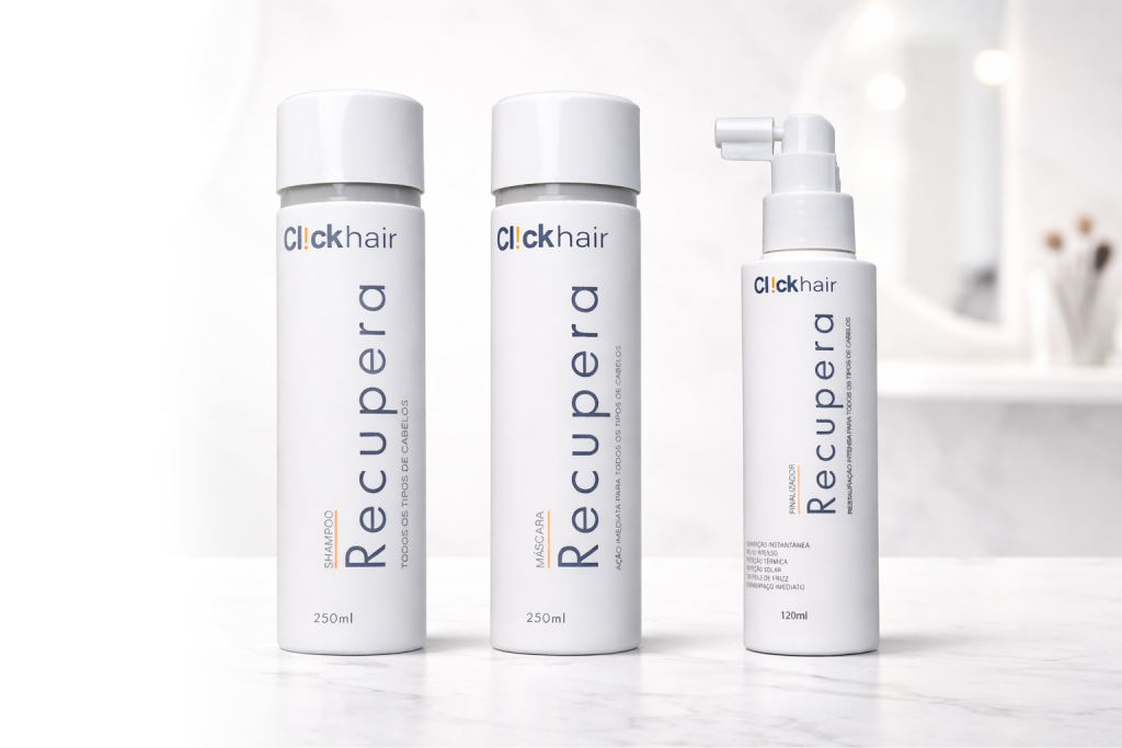 A ClickHair acredita que a beleza não deve ser complicada. Desenvolvemos a linha Recupera com um único propósito: entregar resultado de salão no conforto da sua casa. Sem promessas vazias, sem etapas desnecessárias. Apenas a fusão perfeita entre tecnologia cosmética e ingredientes nobres.